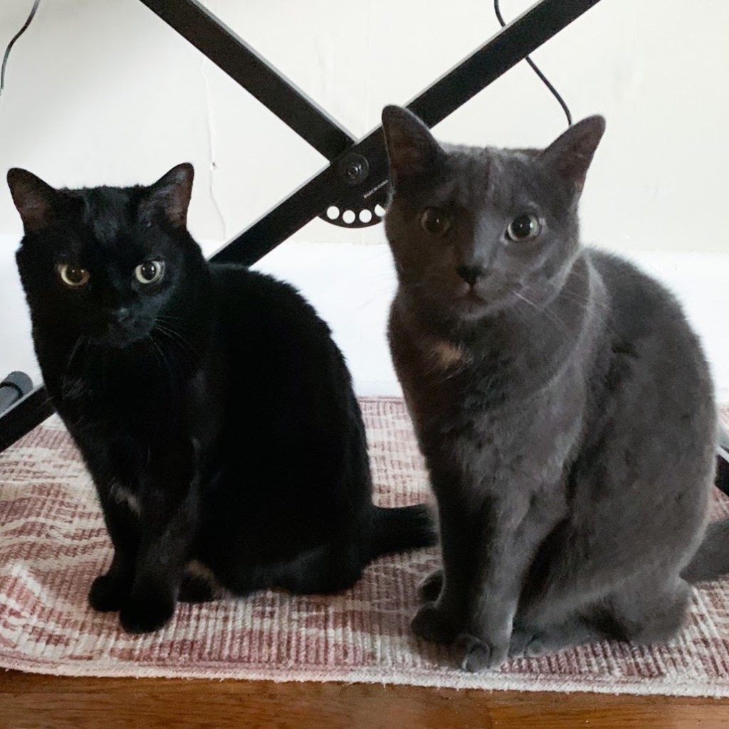 Our cats, Moby (grey) and Rory (black), are Urbana-Champaign natives and have been crashing with us since fall 2014. Next to naps, their main passions are wand toys and chirping at squirrels and birds.